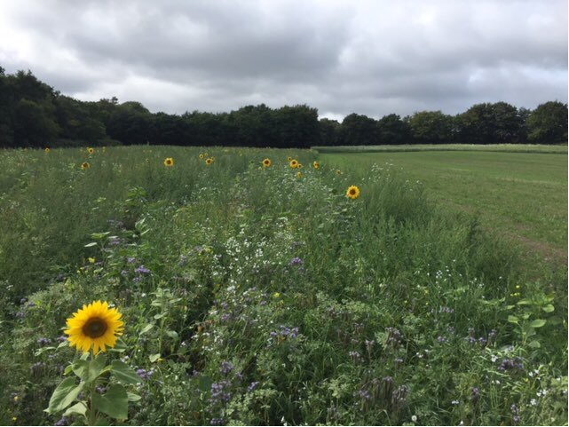 For the moment I will reflect briefly on a recent visit to the battlefields of France to visit the grave of my great uncle William who was killed on 29th August 1918 at the age of 18. Whilst I was walking over the battlefields I notice the field margin (photo below) – it stretched for many thousands of yards and appeared to be an ecological dessert. As I walked the field edge I received a photograph from Dr Sam Bridgewater, our Head of Conservation and Wildlife, showing a field margin from Clinton Farms Partnership. At Clinton Farms, as well as managing to improve outputs of organic milk, animal health and reduce risk from pollution they are taking direct action to improve the biodiversity of the farm – with a focus on pollinators. The result of planting field margins, beyond existing compliance requirements from government, with an appropriate mix of wild flowers was apparent from the survey undertaken and the photograph I received (also below). The Estate intends to introduce targeted outcomes for the environment as part of our innovative farming contract with our excellent farm partners, Velcourt.