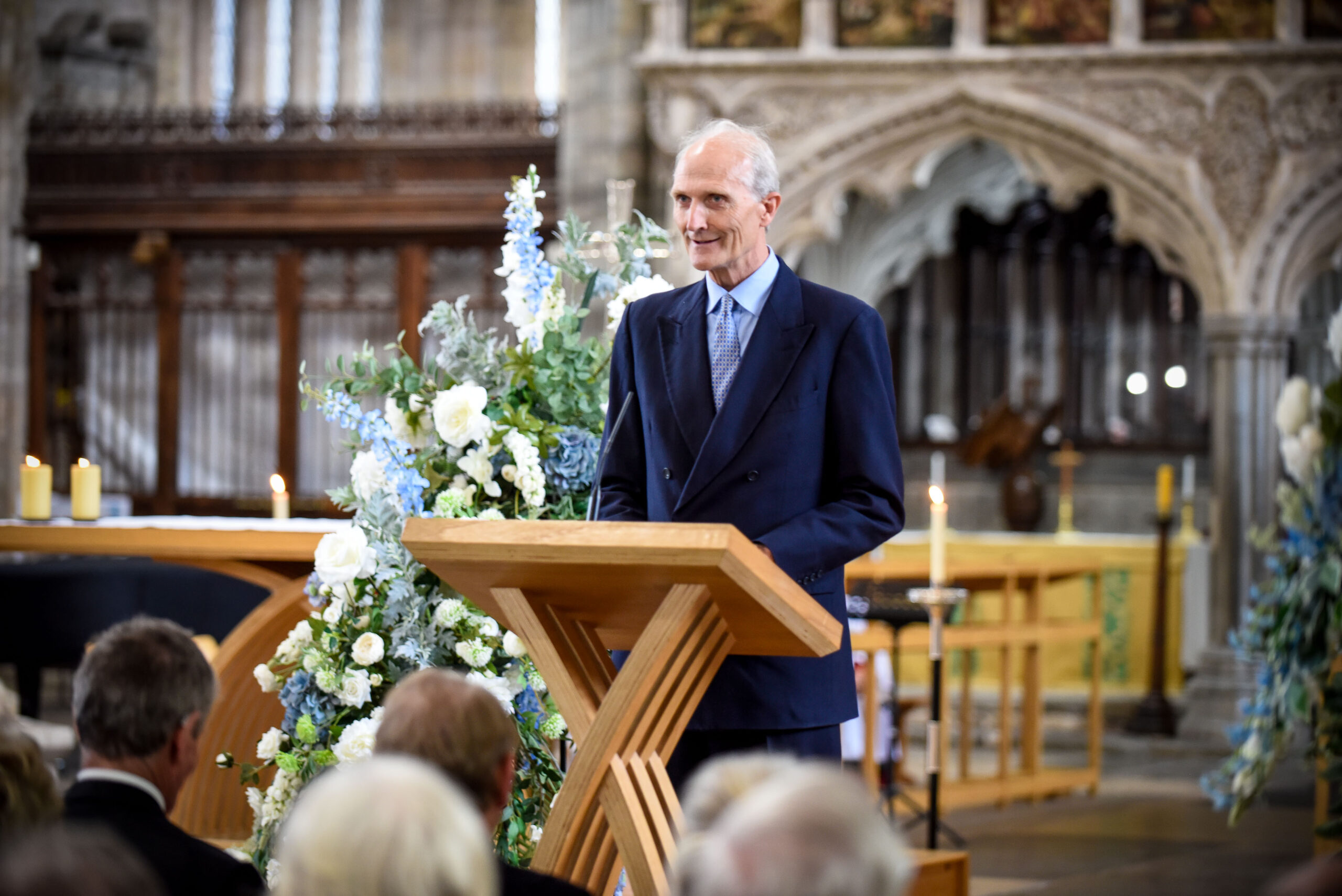 The Lord Lt of Devon, David Fursdon, representing King Charles III, joined the Clinton family, distinguished guests, staff from the Clinton Devon Estate and hundreds of people whose lives were touched by Lord Clinton for the service, led by the Dean, the Very Reverend Jonathan Greener.