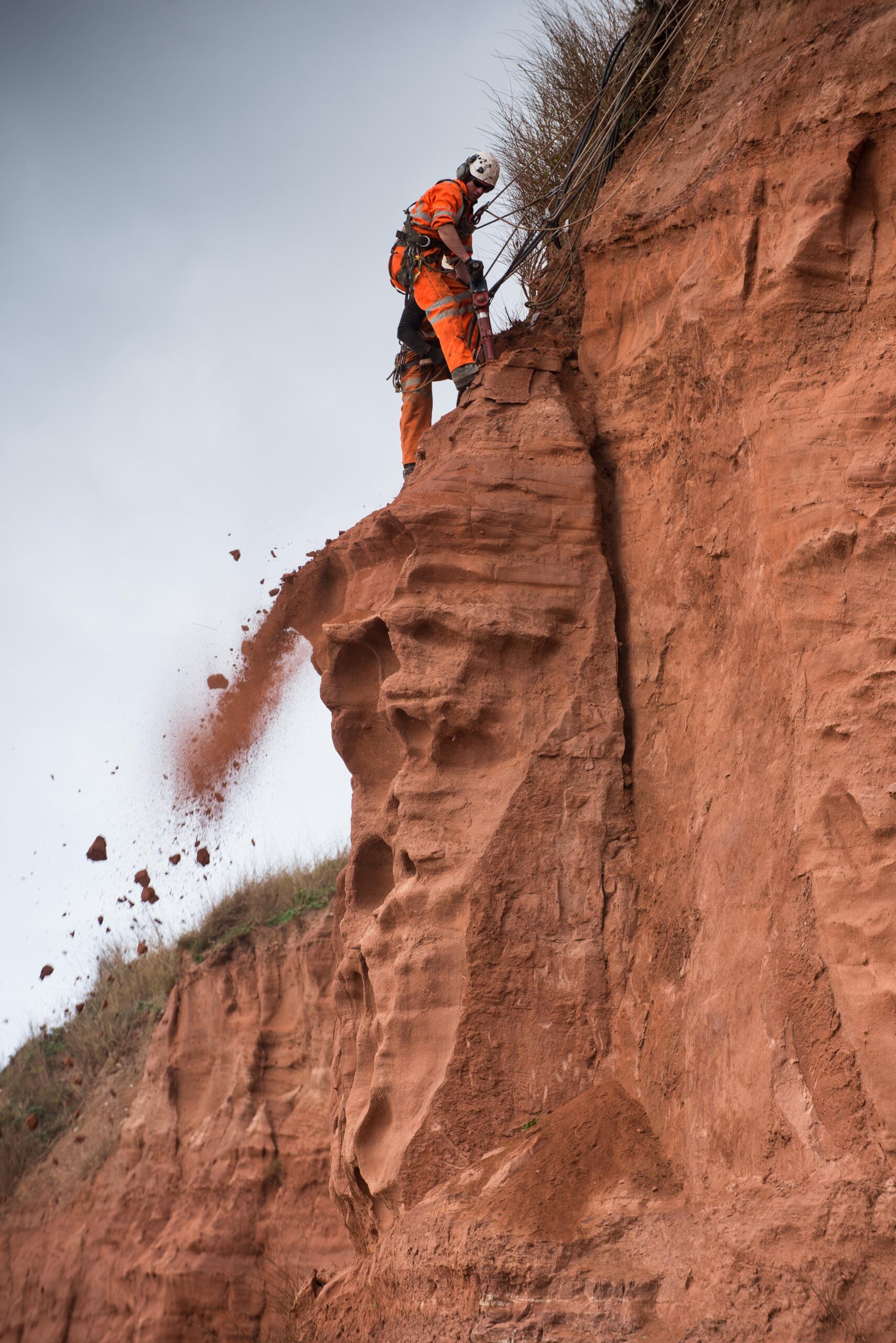 The work is being carried out under special licence from Natural England as the red cliffs form part of the area’s Site of Special Scientific Interest (SSSI).
